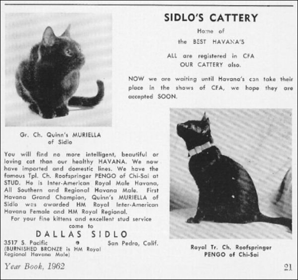 This is the Sidlo Cattery CFA Year Book Ad in 1962.